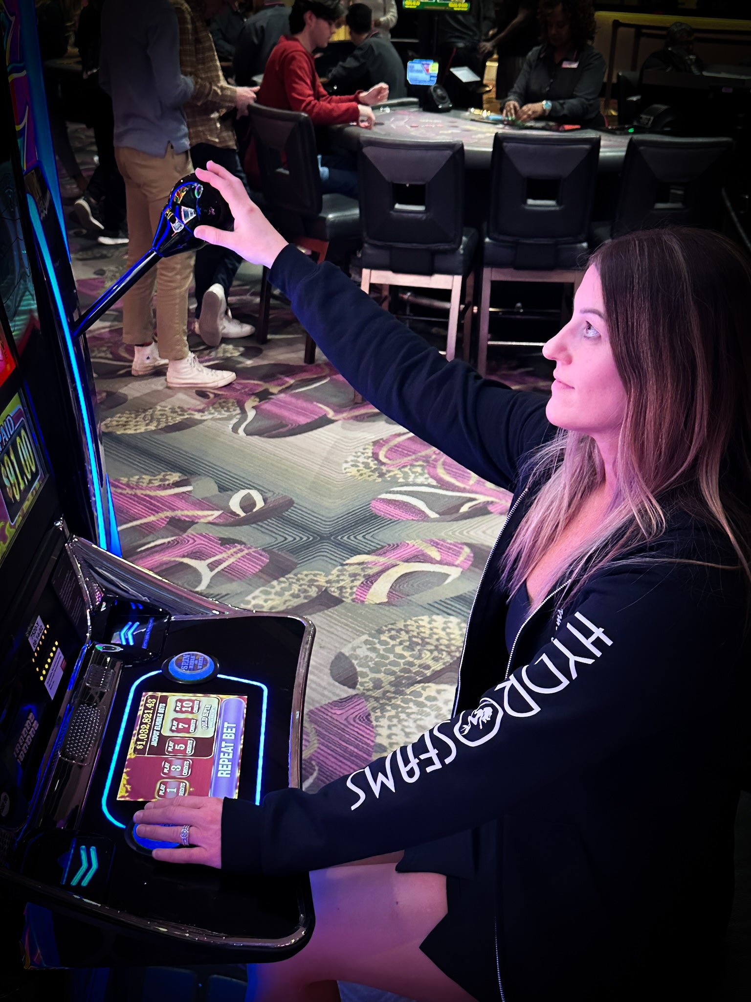 One black zip up hoodie with graphic on sleeve and HydroSeams logo on the chest.