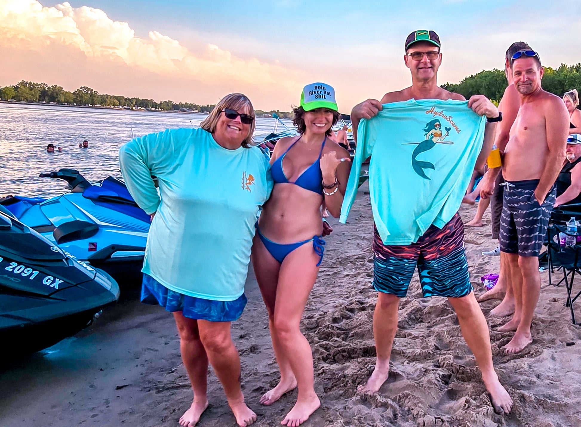 50+ UPF long sleeve shirt with Margarita Mermaid graphic on the back and HydroSeams logo in chest pocket area.